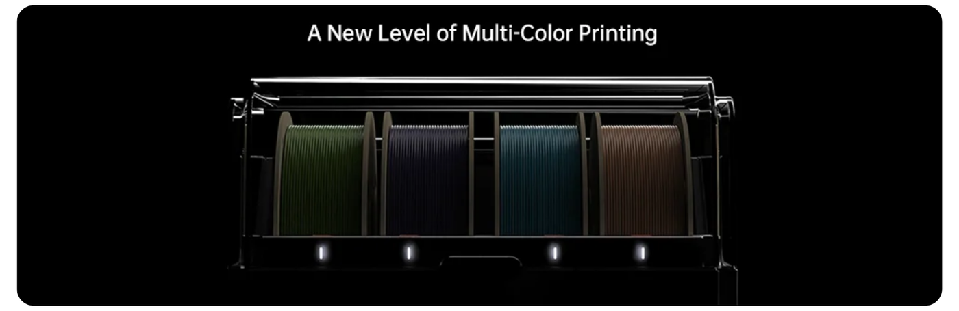Das ACE-Pro-Modul verarbeitet bis zu acht Filamente: Es schneidet, spült und wechselt die Farben vollautomatisch, ohne Zutun des Anwenders. Übergangsbereiche werden vom Firmware-Algorithmus optimiert, um Materialverluste zu minimieren und komplexe Modelle mit Farbverläufen oder zweifarbigen Funktionsteilen zu ermöglichen.